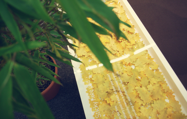 Recalling past memories everyone should try make bookmarks with dried leaves at least once as a child, we made the Sticky leaf. It can be used for decoration to refresh atmosphere as well as bookmarking and making some notes.