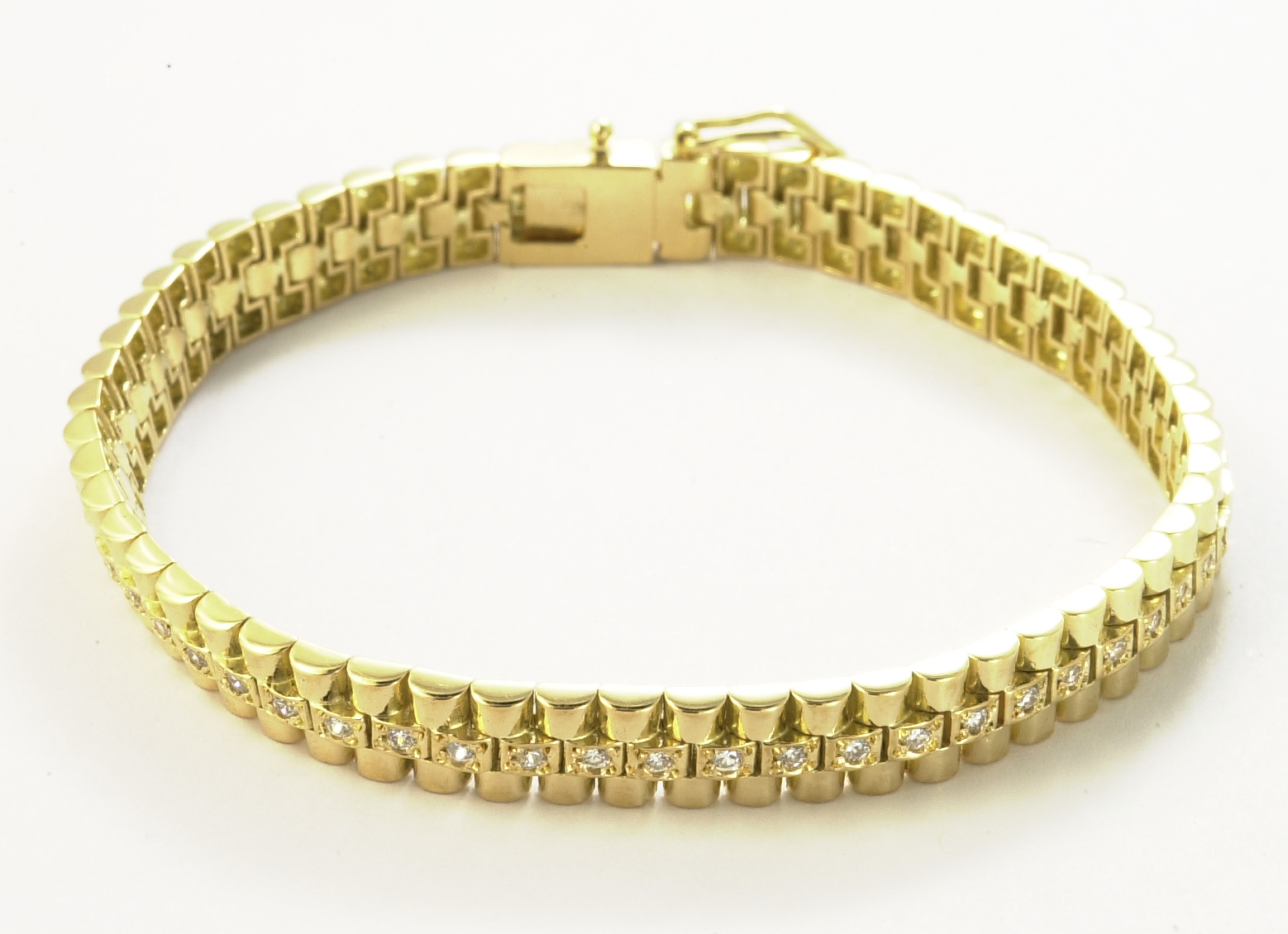 This elegant 7-inch bracelet features 33 sparkling gems set at regular intervals, creating a refined yet eye-catching look. Its timeless design makes it a perfect accessory for both everyday wear and special occasions.